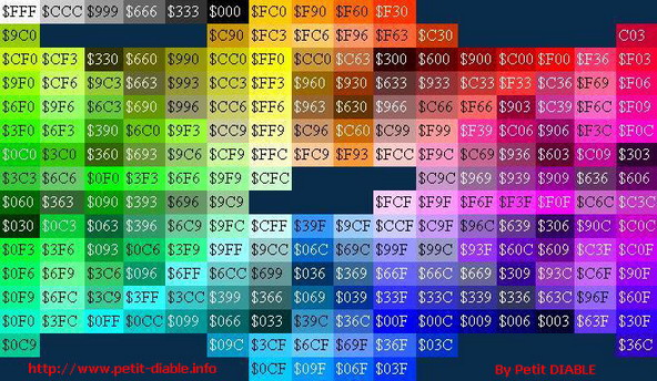 Caracteres utilisable pour faire des couleurs : 0 1 2 3 4 5 6 7 8 9 a b c d e f